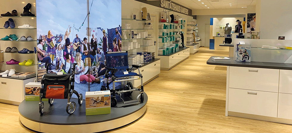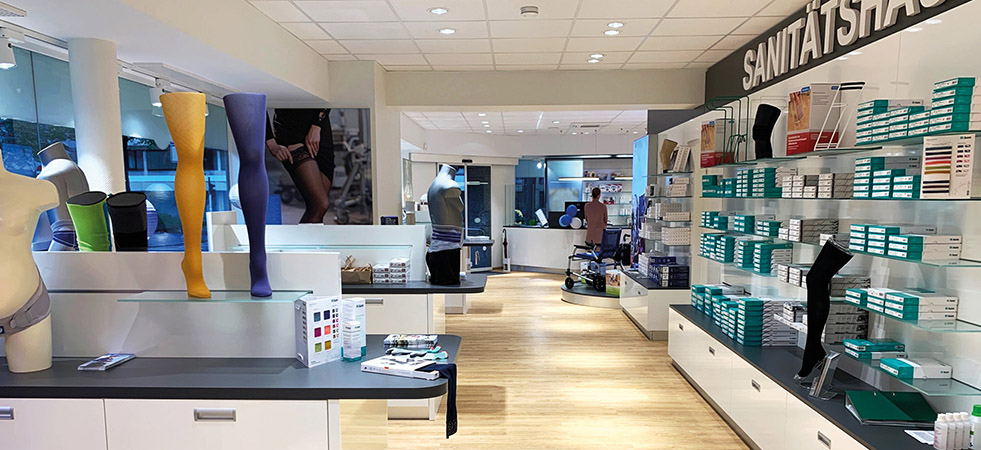 Besonders stolz sind wir auf die Vergrößerung unserer Lagerfläche, denn mit der Neugestaltung unserer Räumlichkeiten verfügen wir jetzt über genügend Platz, um Ihnen unser breit gefächertes Sortiment noch besser zu präsentieren. Dieses setzt sich aus verschiedenen Hilfsmitteln zur Gesundheitserhaltung und Förderung der Mobilität sowie, Reha-, Orthopädie- und Sanitätsartikeln zusammen. Alltagshilfen, Hilfsmittel für Bad und WC, Rollatoren und Rollstühle sowie Gehstöcke, Kompressionsstrümpfe, Bandagen, Einlagen und Spezialanfertigungen sowie vieles mehr können Sie in unseren beiden Sanitätshäusern erwerben.